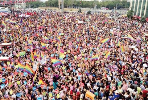 türkiye`deki lgbt hareketinin en görkemli yürüyüşü, dün taksim`de yaşandı. 30 bini aşkın kişi, `yasak ne ayol` sloganıyla gökkuşağını İstiklal caddesi`ne indirdi. yürüyüşe gezi eylemleri ve lice damga vurdu. 11. onur yürüyüşü, anayasal eşitlik ve tanınma, cinsel yönelim hakkı ve homofobiye karşı ..