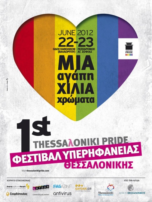 yunanistan’ın kuzeyindeki ilk onur yürüyüşü “biricik aşk, binlerce renk” sloganıyla gerçekleşecek. selanik belediyesi işbirliği ile gerçekleştirilecek olan festival, dj’ler ve yerel lgbt topluluğunun katılımı ile katholikon caddesinde bir müzik organizasyonu ile 22 haziran’da başlayacak. aya..