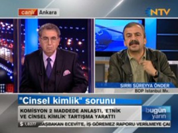 yeni anayasa yazma çalışmaları “cinsel yönelim” ifadesine takıldı. cinsel yönelim haklarının anayasal güvence altına alınması istemine akp ve mhp’den itiraz geldi ve uzlaşma sağlanamadı. aynı günün akşamı ntv’ye çıkan bdp’den sırrı süreyya önder, yeni anayasanın cinsel yönelim konusunda eşit olması ..