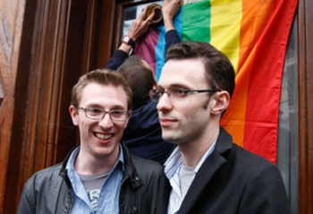 londra’da, gey bir çiftin bardan atılmasını protesto eden yaklaşık 300 kişi, barın önünde topluca öpüşerek eylem yaptılar. 23 yaşındaki james bull ile 26 yaşındaki jonathan williams, londra`nın merkezinde soho semtinde yer alan pub`ın işletmecisi tarafından “müstehcen” davranmakla suçlanarak bard..