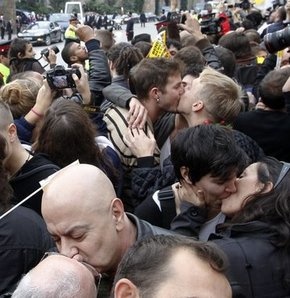 Eşcinseller Katolik Kilisesinin Homofobisine Karşı Öpüştüler