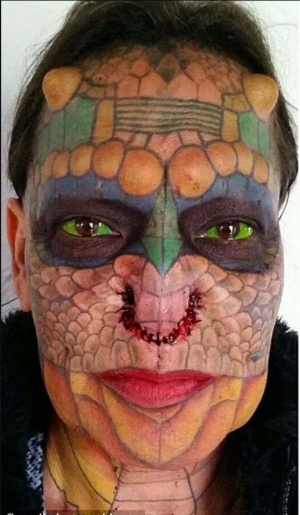 eski bir bankacı olan trans kadın, ejderha gibi görünmek için onlarca ameliyat olmuştu ve olmaya da devam ediyor. dailymail`den derlediğimize göre son operasyonda kulaklarını ve burnunu tamamen aldırdı. doğumda verilen ismi richard hernandez olan 55 yaşındaki trans kadın, geçtiğimiz yıllarda oldu..