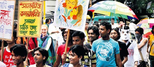 dünyanın birçok ülkesinde çeşitli etkinliklere sahne olan eşcinsel onur haftası (gay pride) eşcinselliğin yasak olduğu hindistan`da bu sene ilk kez kutlandı. ülkenin üç ayrı bölgesinde toplanan eşcinseller, eşcinselliğin simgesi olan "gökkuşağı bayrağı"yla saatlerce yürüdü. kutlamalarda eşcinseller,..